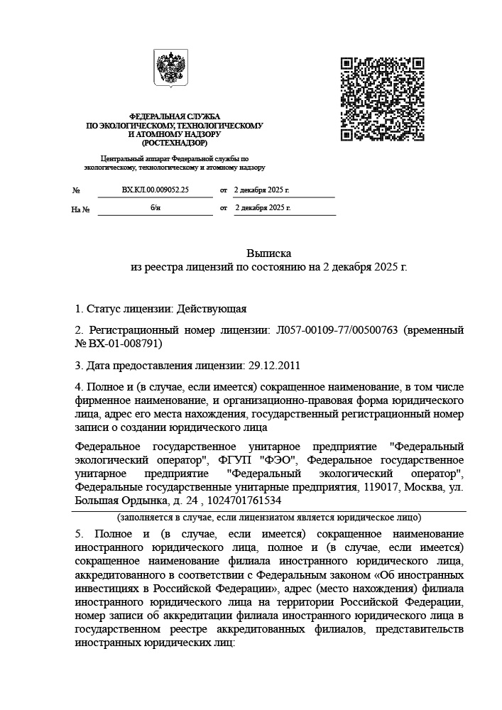 - Лицензия на обращение с промышленными отходами I–IV классов опасности